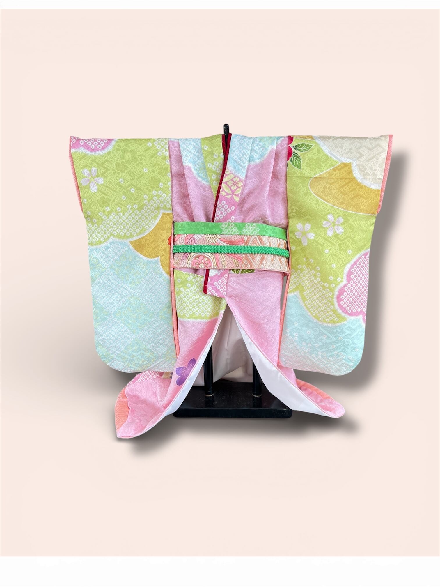 可愛い色合いのお引き摺り振袖